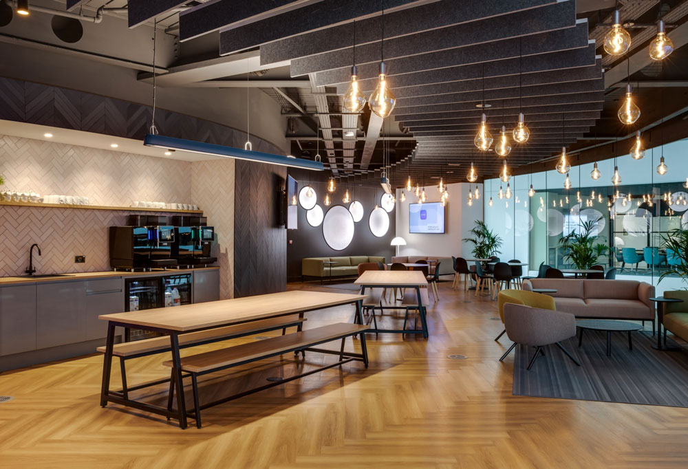 Workspace social space design, including breakout areas and canteens, plays a crucial role in cultivating a dynamic and collaborative workplace atmosphere. These areas are carefully crafted to encourage relaxation and socialising. With thoughtful layout and amenities, these spaces facilitate informal meetings, networking, and downtime, ultimately enhancing employee satisfaction and productivity.